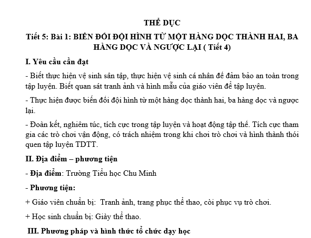 THỂ DỤC LỚP 3 Tiết 5: Bài 1: BIẾN ĐỔI ĐỘI HÌNH TỪ MỘT HÀNG DỌC THÀNH HAI, BA HÀNG DỌC VÀ NGƯỢC LẠI ( Tiết 4)