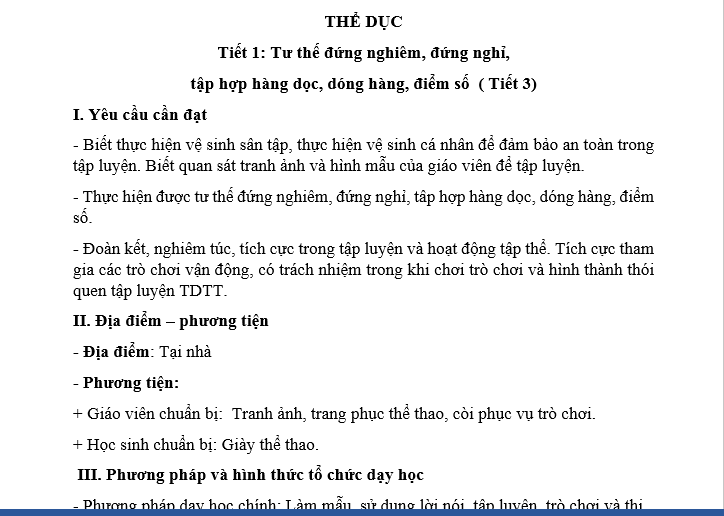 THỂ DỤC LỚP 1 Tiết 1: Tư thế đứng nghiêm, đứng nghỉ, tập hợp hàng dọc, dóng hàng, điểm số ( Tiết 3)