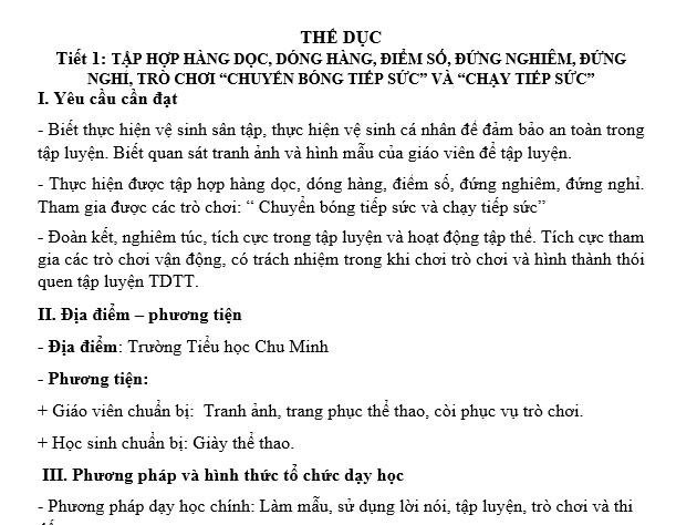 THỂ DỤC LỚP 4 Tiết 1: TẬP HỢP HÀNG DỌC, DÓNG HÀNG, ĐIỂM SỐ, ĐỨNG NGHIÊM, ĐỨNG NGHỈ, TRÒ CHƠI “CHUYỂN BÓNG TIẾP SỨC” VÀ “CHẠY TIẾP SỨC”